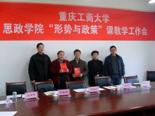 学校党委高度重视“形势与政策”课的建设工作,严格按照教育部社科司、重庆市教委有关文件精神实施对大学生的形势与政策教育。为更好地总结教学经验,建设好“形势与政策”这门校级重点课程,12月17日下午,思政学院在慧智楼91210会议室召开了2010年度“形势与政策”课教学工作会。校党委副书记朱伯兰教授出席会议并作重要讲话,评估办主任刘幼昕、副主任杨代贵、宣传部部长肖应红、学工部副部长张筱璐、思政学院党总支书记陈松、院长余常德、副院长周顺文及全体“形势与政策”课专兼职教师出席会议。会议由思政学院党总支书记陈松教授主持。